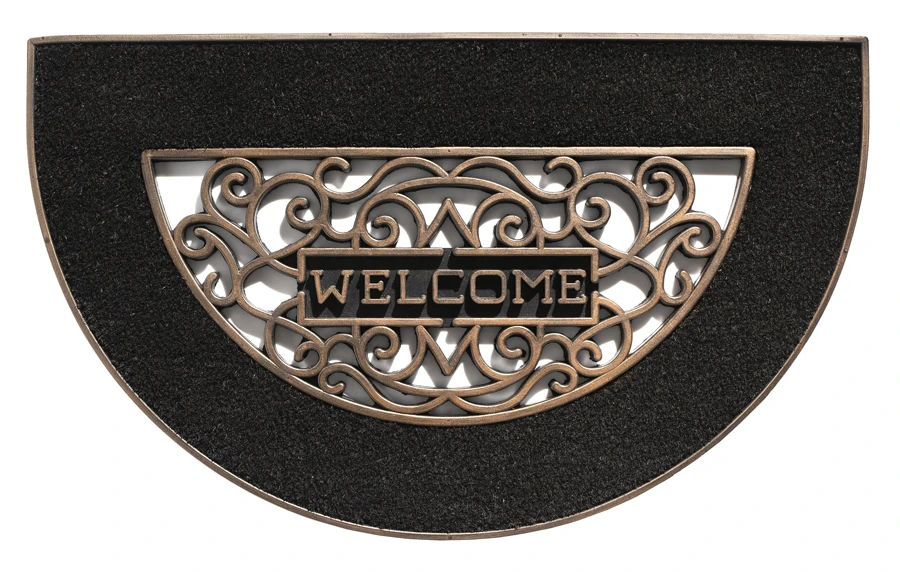 HAMAT Buitenmat Mathara Halfrond – 70x45cm – Naturel/Zwart – Deurmat